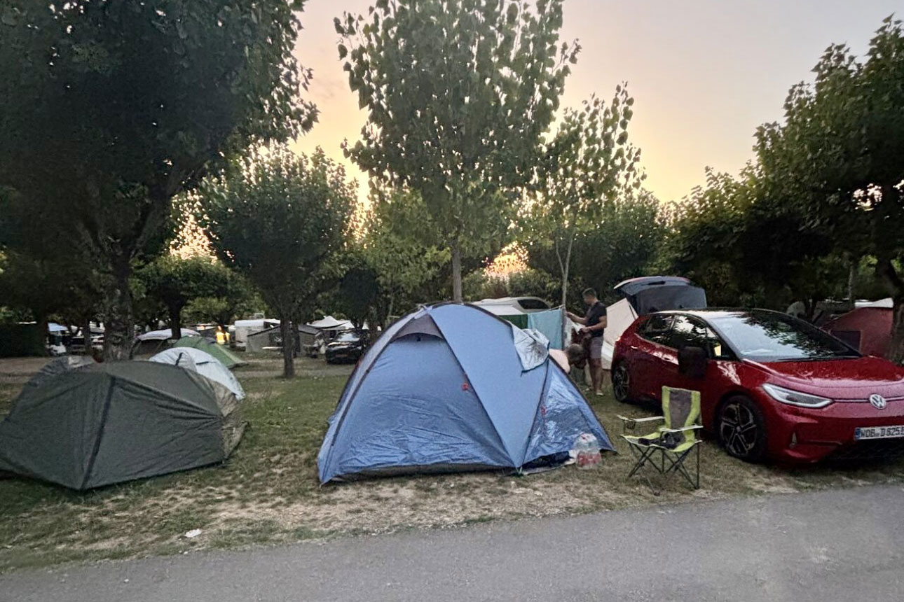 Die gesamte Navigation lief über den VW-Routenplaner, der automatisch passende Ladepunkte vorschlägt und sich nach Anbietern filtern lässt – z. B. IONITY. Mit dem gewählten Abo kostete die Kilowattstunde dort nur 39 Cent, also wurde überwiegend an der Autobahn geladen. Campingplätze oder City-Lader? Nur in Ausnahmefällen.