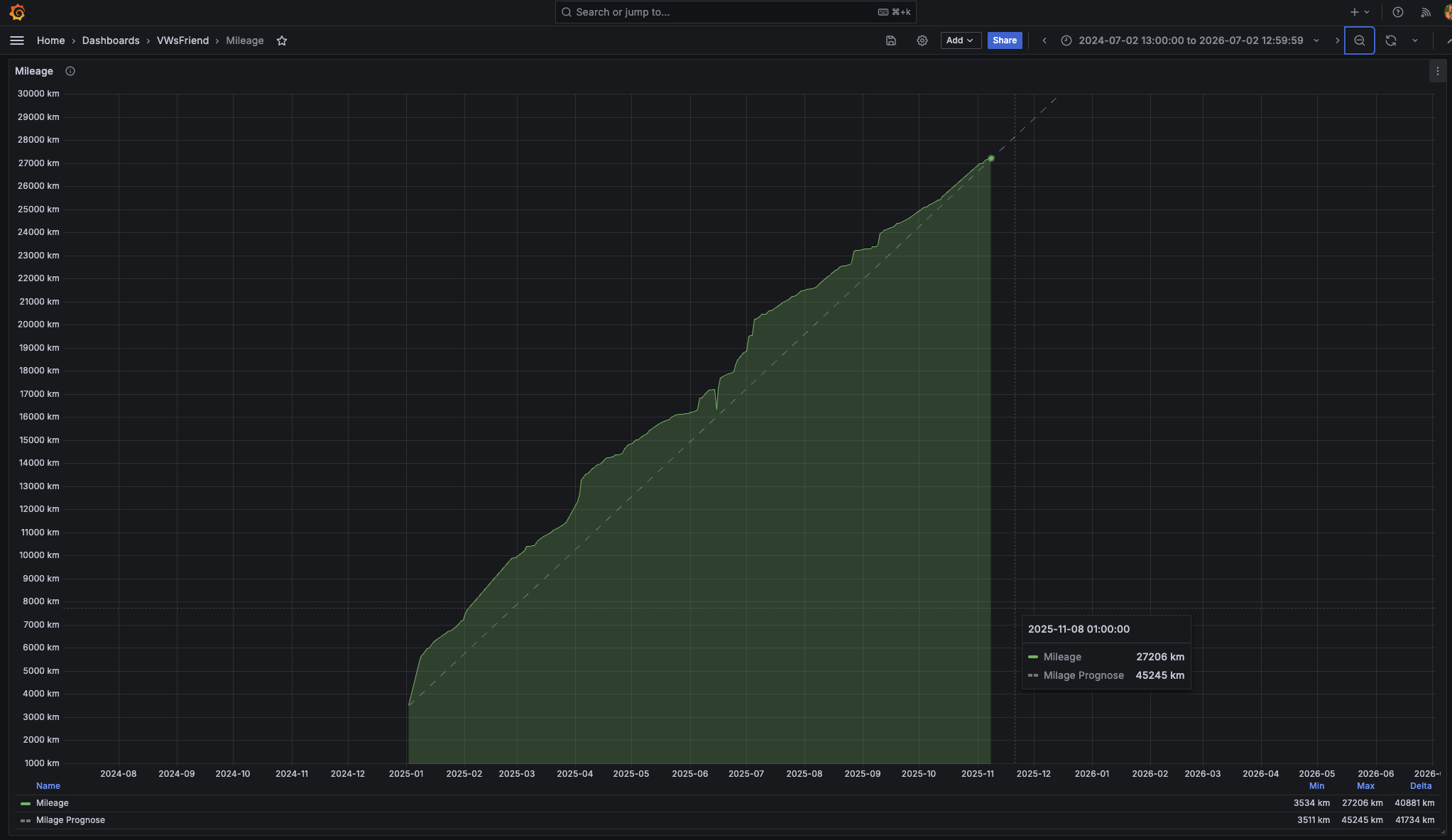 Kilometerstand & Prognosen